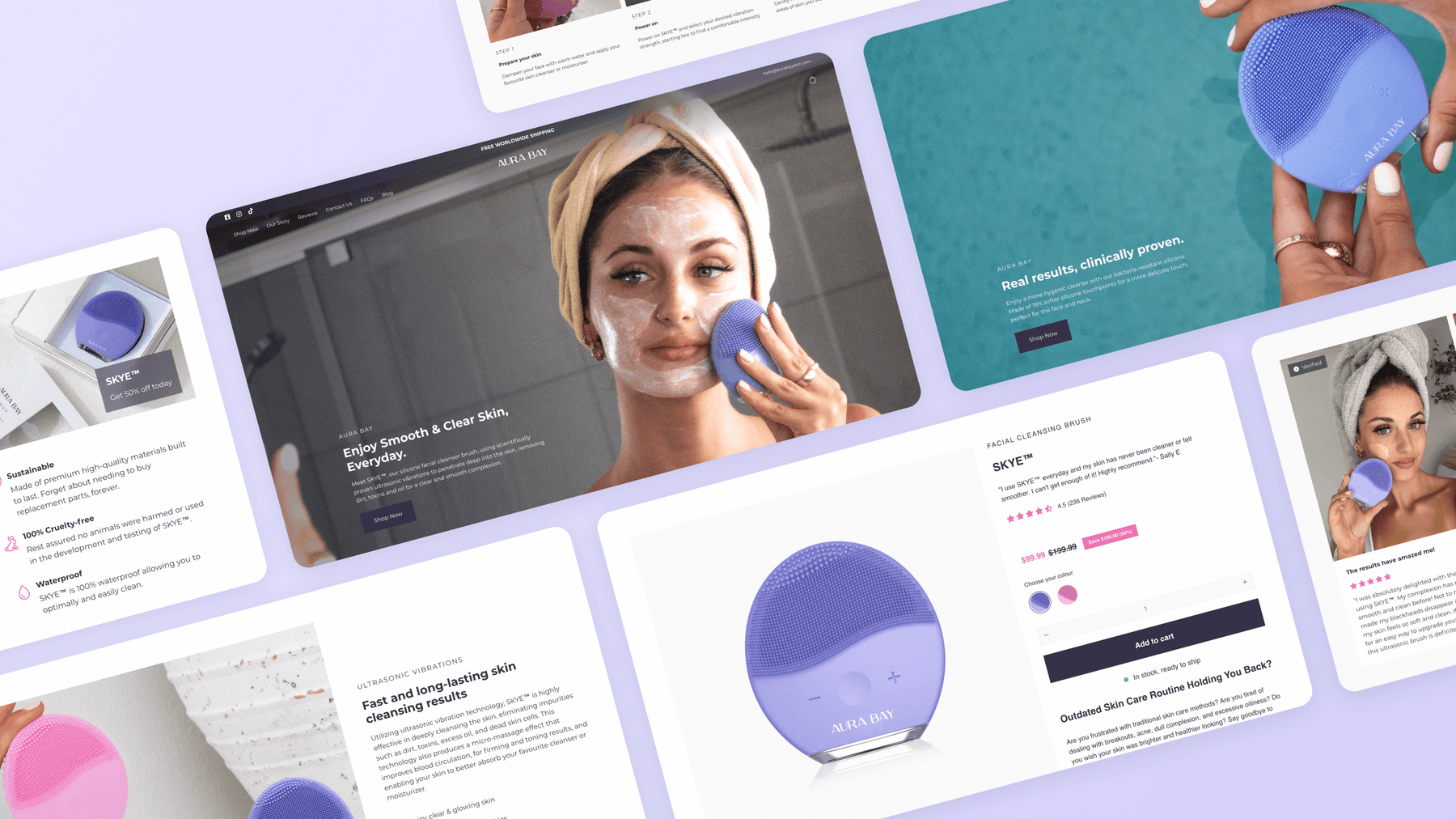 I designed and developed the Shopify store for Aura Bay, a premium skin care brand known for their iconic SKYE™ Facial Cleansing Brush. Through Shopify theme customisation, and custom development, I achieved a modern design that effectively positions their product as the go-to solution in the crowded skin-care niche. Furthermore, utilising conversion rate optimisation strategies and Shopify performance enhancements, Aura Bay now stands as a powerful, trusted, and successful skin care brands.